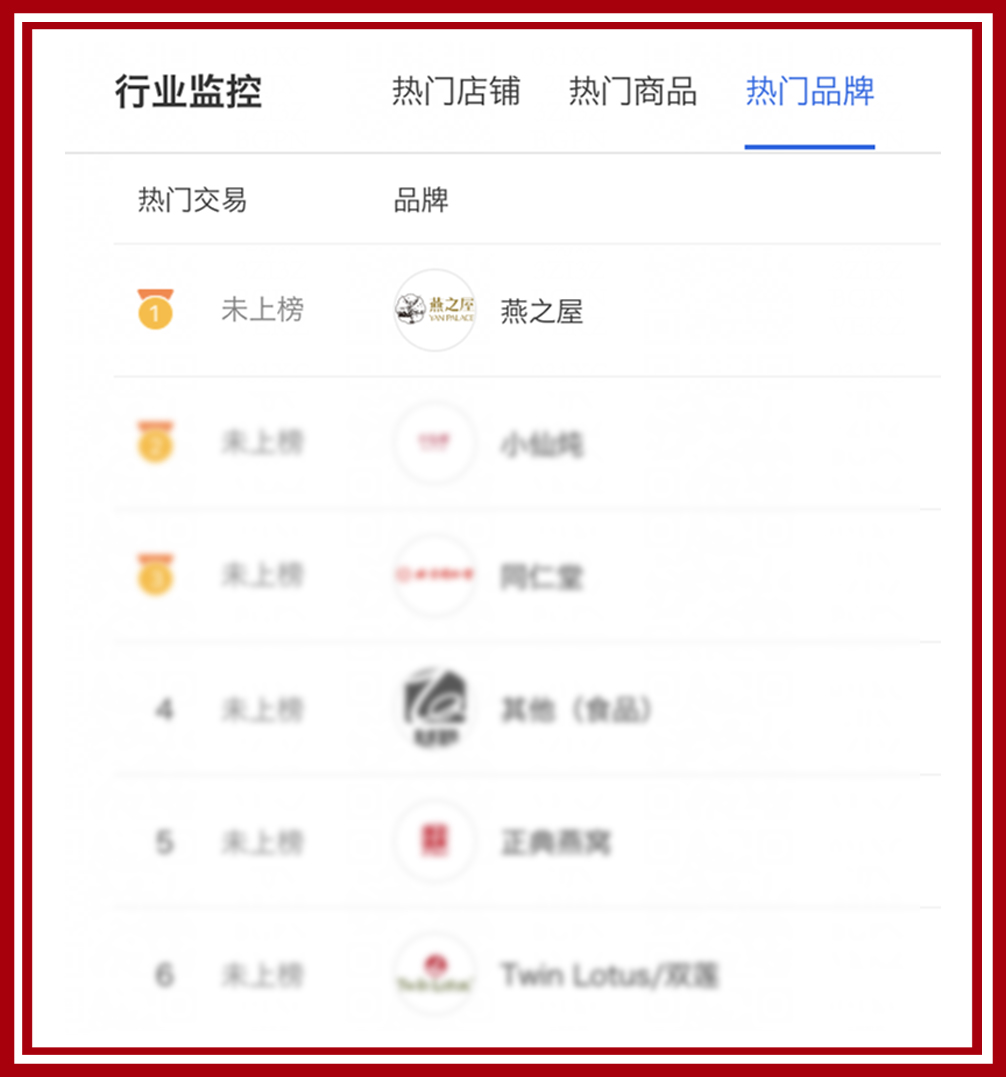 圖:燕之屋獲2019天貓618滋補品類(lèi)熱門(mén)品牌排行第一